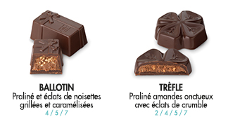 Idéal pour une dégustation en famille ou entre amis, ce ballotin contient 42 chocolats, parmi une sélection de 14 recettes : pralinés gourmands, ganaches fondantes, accords parfaits et saveurs subtiles… Les amateurs de chocolat noir vont se régaler !