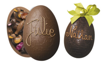 Vous cherchez une idée originale et gourmande ? Optez pour l’œuf de Pâques en chocolat ! Garni d’un savoureux assortiment de sujets de Pâques, vous n’aurez plus qu’à choisir son prénom pour faire de cet œuf un cadeau unique !