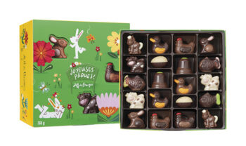 Laissez-vous tenter par ce très joli ballotin de 750 g garni de 60 petits sujets de Pâques. Parfait pour partager un moment de gourmandise en famille.